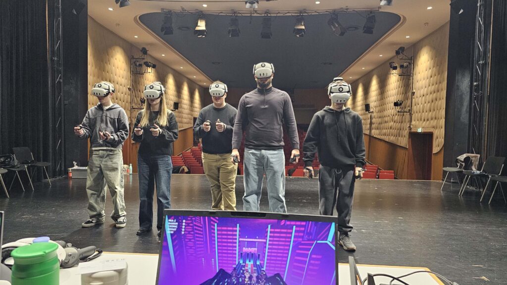 Eine Gruppe startete im VR Escape Room, während die zweite Gruppe zeitgleich an Offline-Formaten arbeitete. Im VR-Szenario standen die Jugendlichen vor komplexen Aufgaben, die nur durch gemeinsames Denken, klare Kommunikation und funktionierende Kooperation lösbar waren.